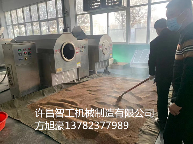 许昌智工DCCZ7-15型电磁炒货机一锅可炒制200斤芝麻,40分钟一锅,炒制出的芝麻鼓肚饱满均匀一致,客户非常满意。